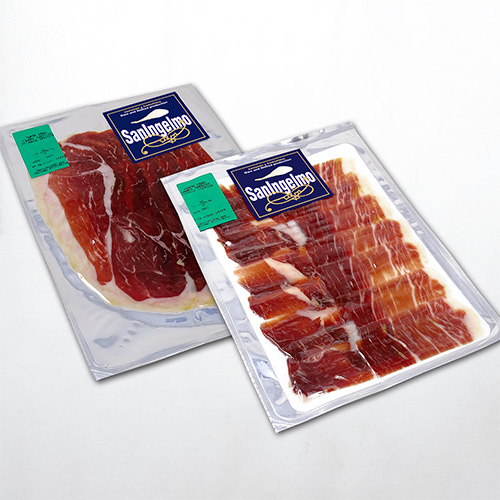 JAMÓN DE CEBO IBÉRICO – 50% RAZA IBÉRICA – LONCHEADO sobre 100 gramos.